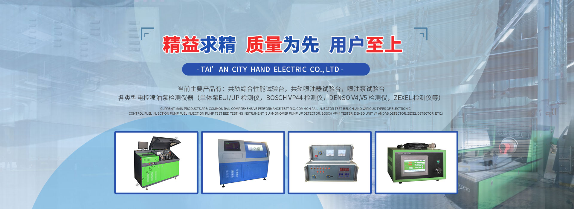 泰安市漢德電氣有限責任公司是設計、制造和生產(chǎn)內燃機檢測試驗設備的企業(yè),集生產(chǎn)制造、配件銷售為一體。隨著全球環(huán)境對環(huán)保要求的日益提高,內燃機技術相應取得長足進步,尤其是柴油機噴射系統(tǒng)正向著高壓、電控技術的方向迅猛發(fā)展,基于此,我們公司目前著力開發(fā)、拓展專門針對于高壓共軌系統(tǒng)和其他電控噴射系統(tǒng)的檢測設備,當前主要產(chǎn)品有:共軌綜合性能試驗臺,共軌噴油器試驗臺,噴油泵試驗臺,各類型電控噴油泵檢測儀器...